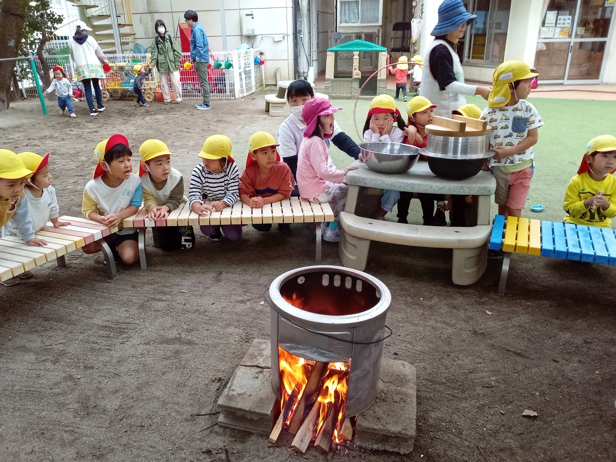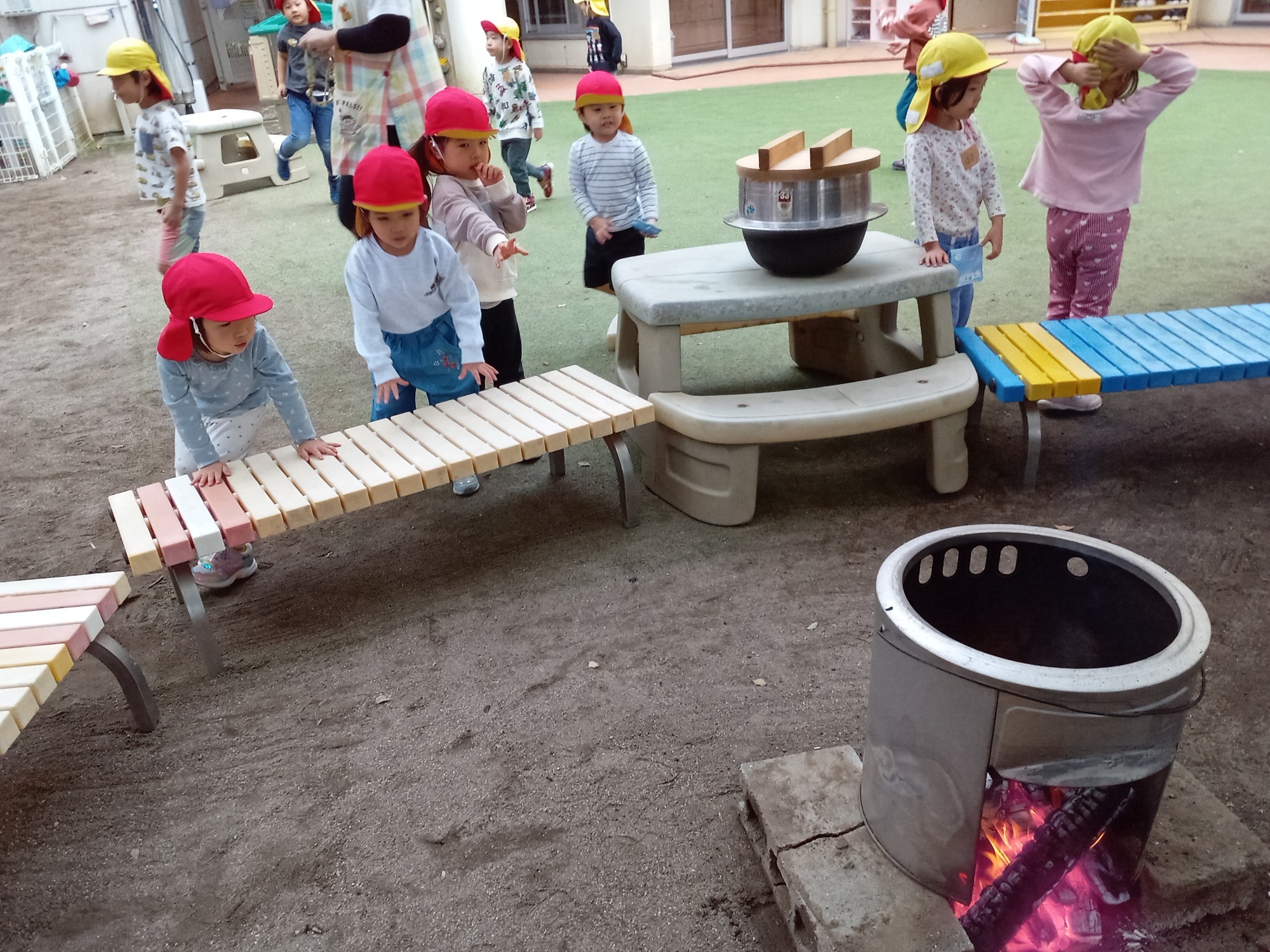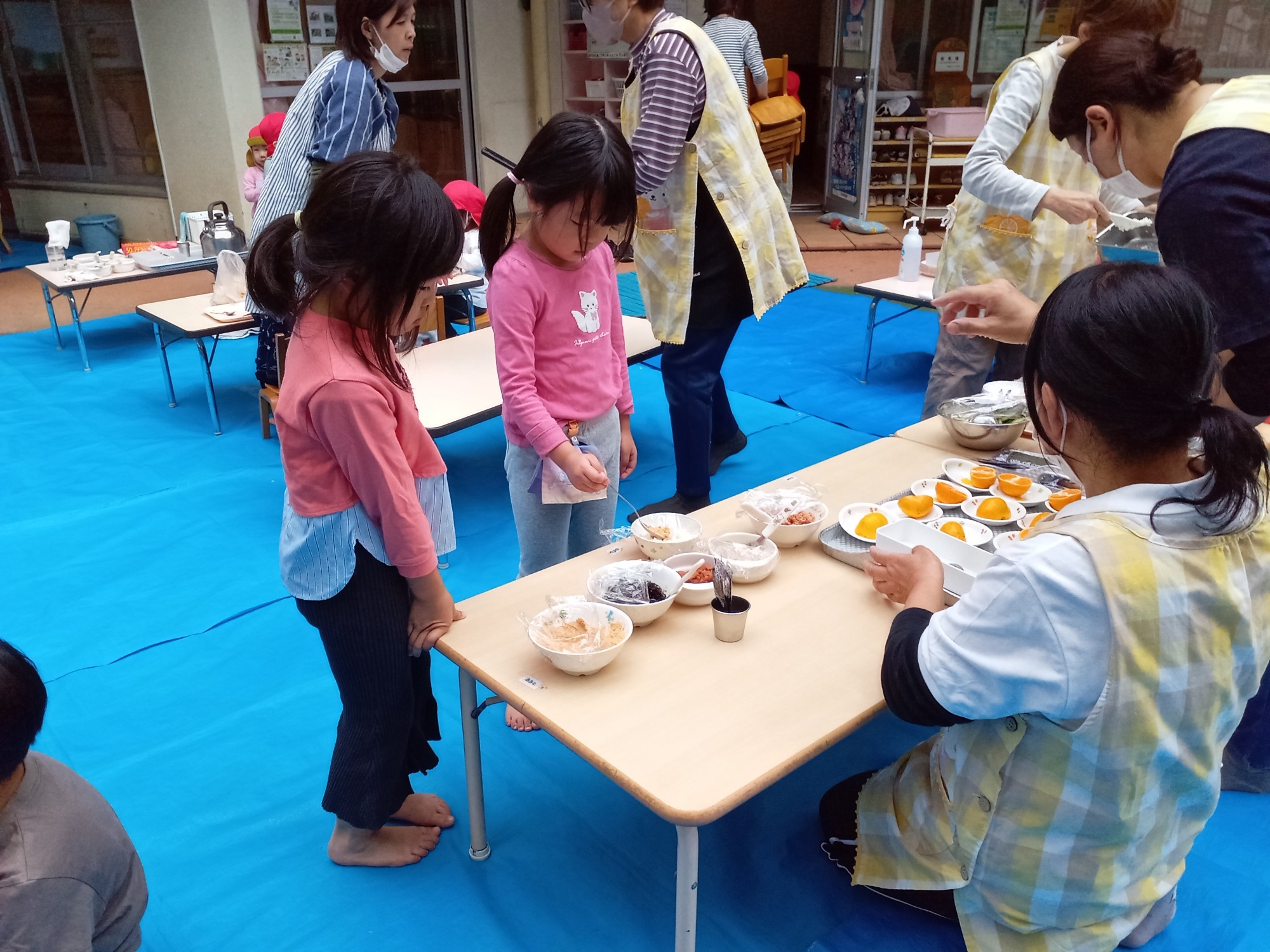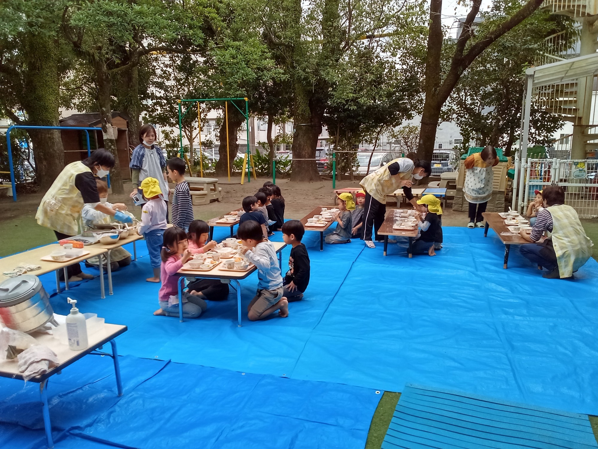 園庭でのお弁当ワクワクします