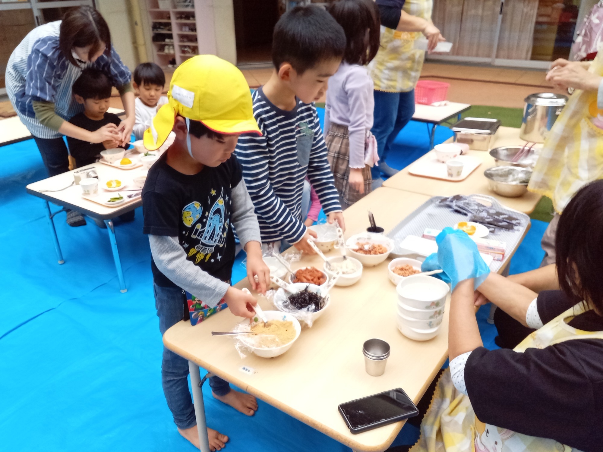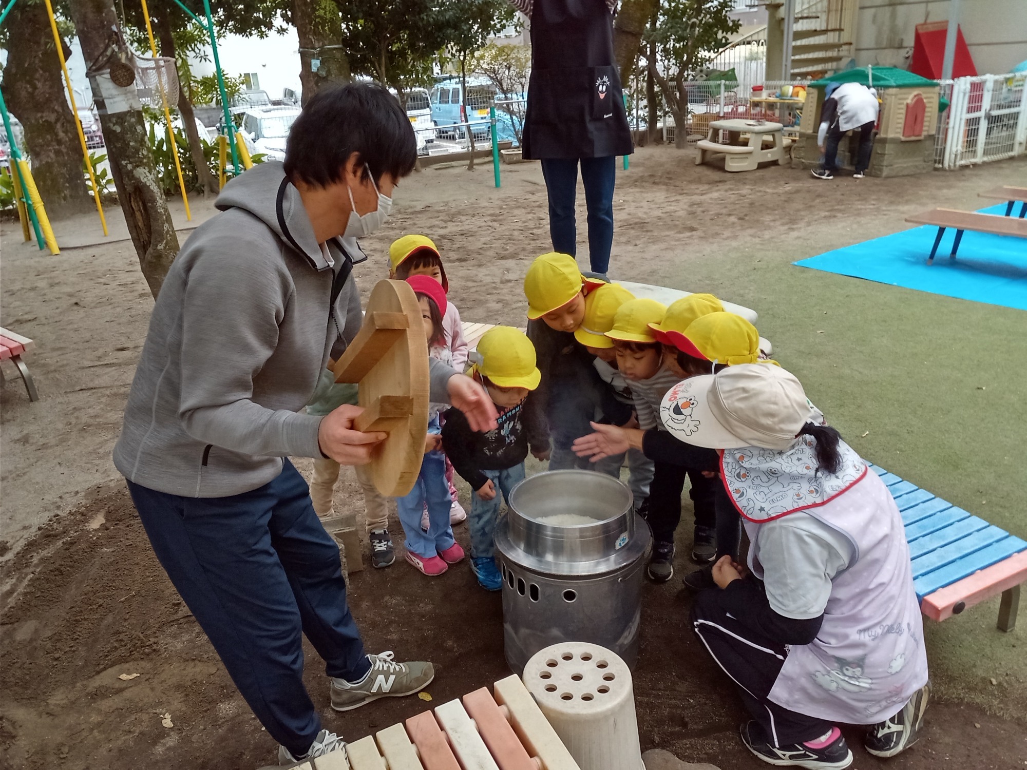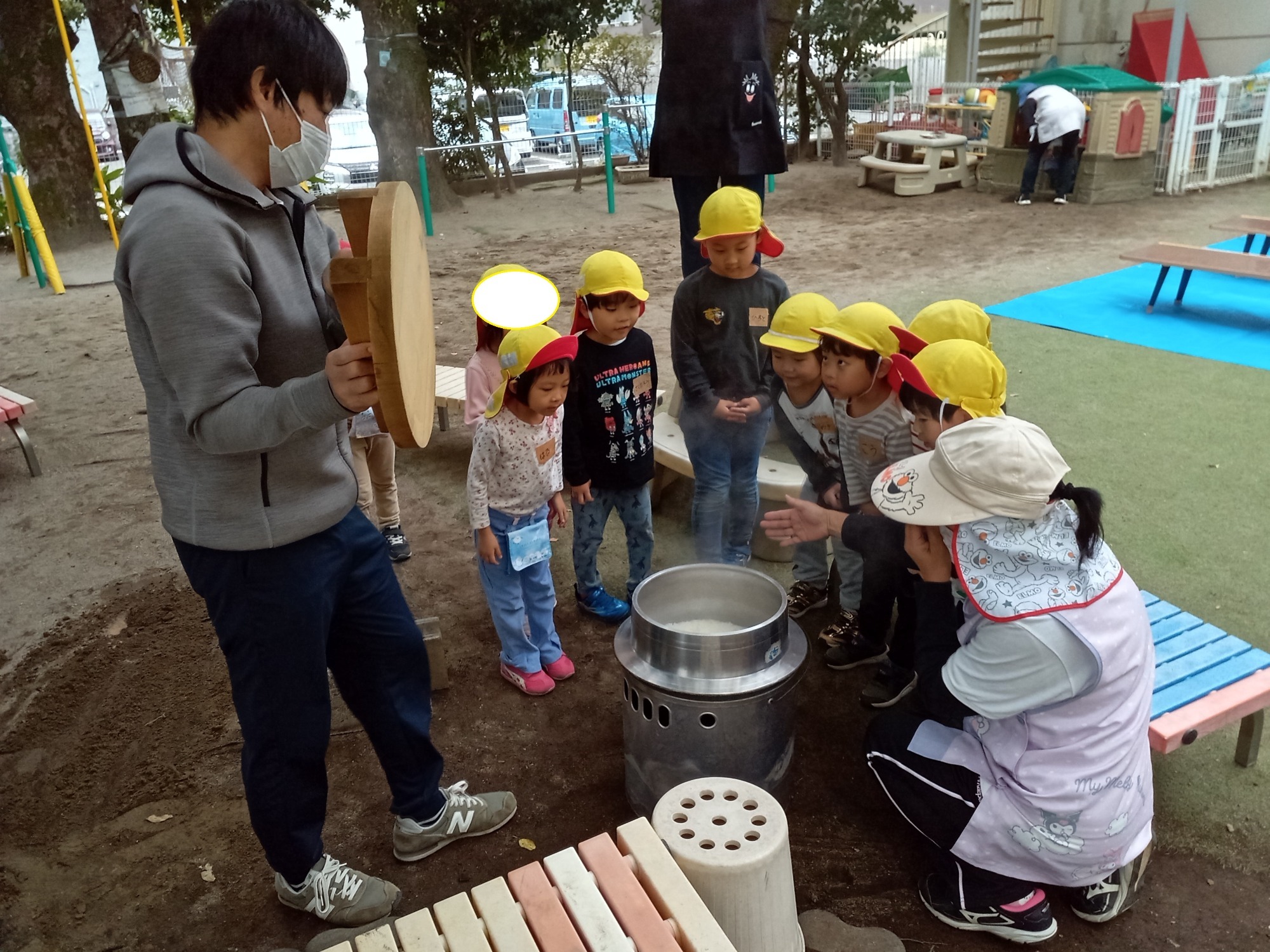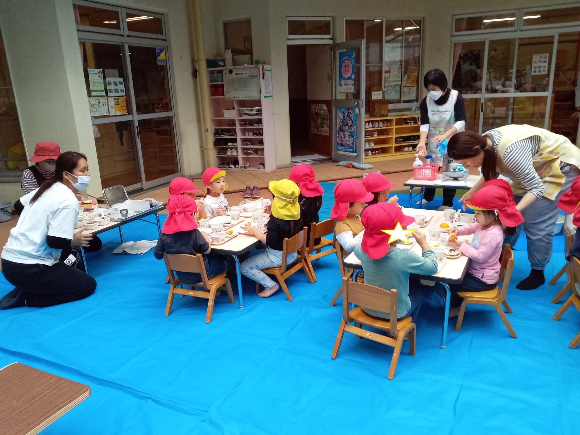 園庭でのお弁当ワクワクします