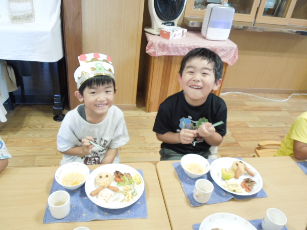 太平洋組が育てた夏野菜を収穫し給食のカレーに入れてもらいました。つるむらさき、ピーマン、おくら、なすが大好きになりました。お鍋も空っぽになり大満足でした。