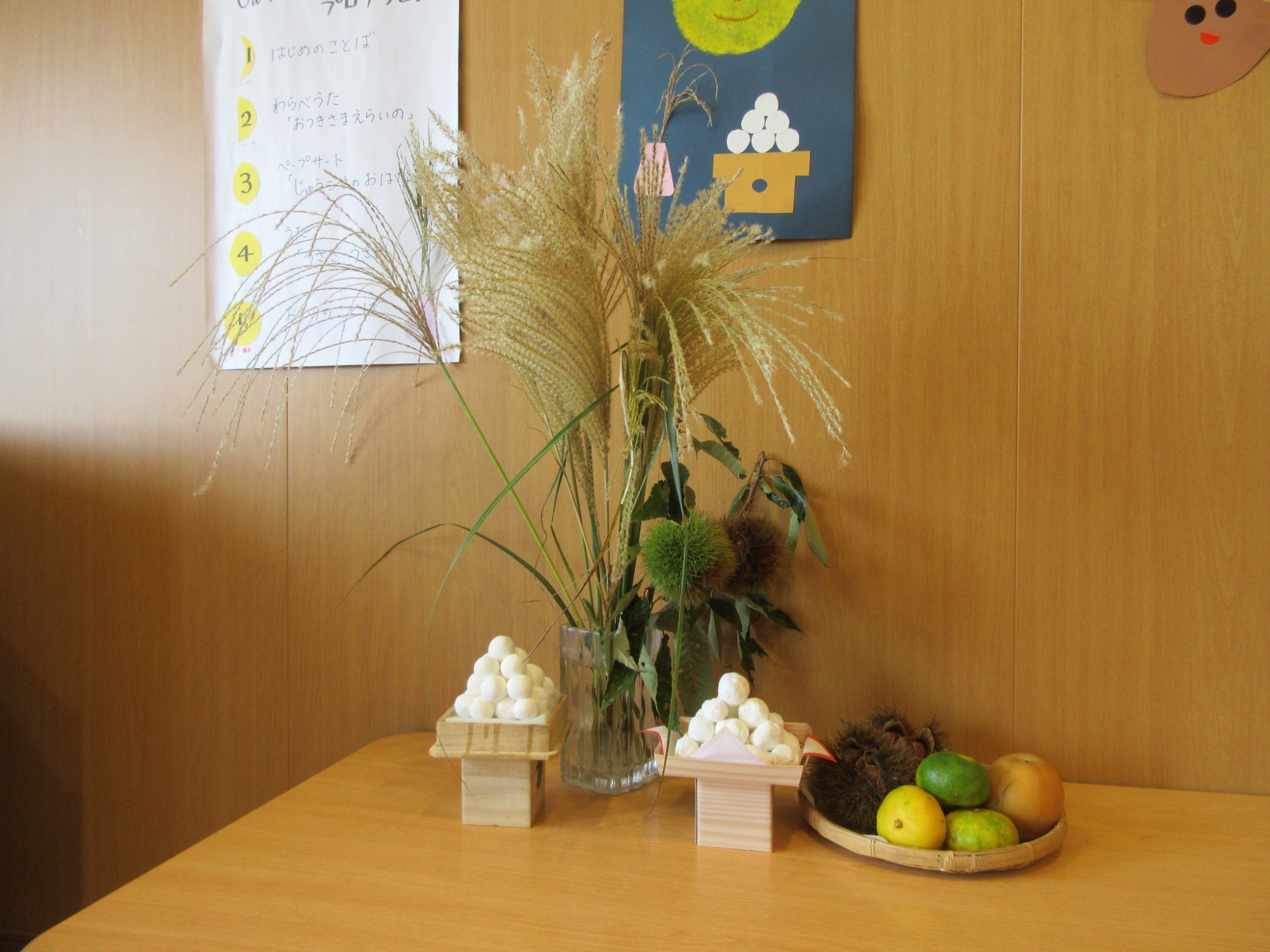 未満児は相信組(2歳児)さんが、紙粘土でお月見だんごを作って飾りました。