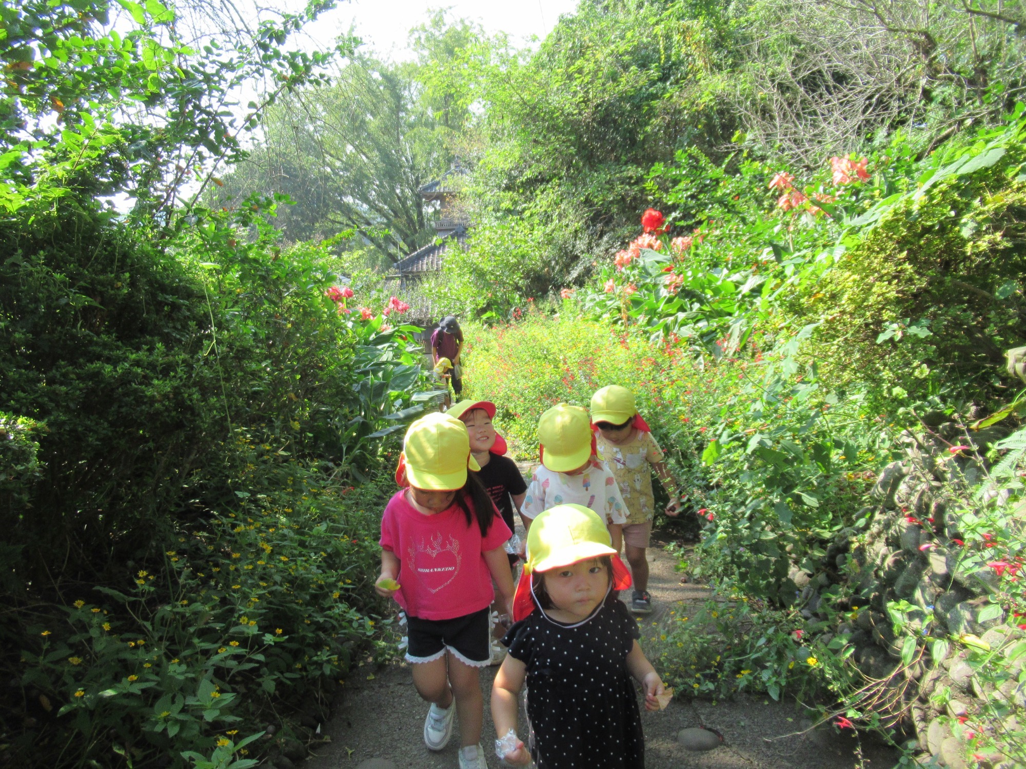 友愛園の小道を歩きます。お花がいっぱいできれいだね。