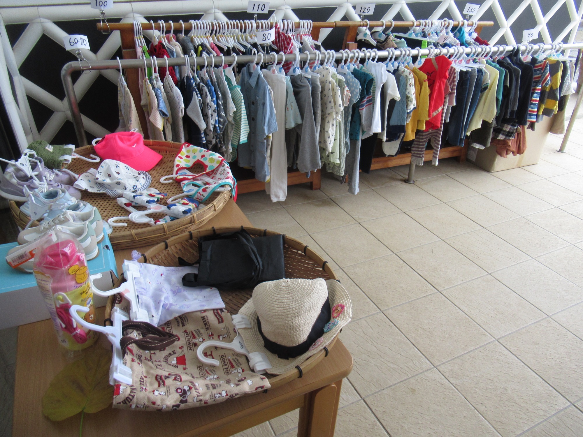 【リサイクル活動】保護者会を中心に着れなくなった服を持ち寄って頂き、欲しい方が持ち帰りました。お店屋さんみたいな素敵な空間でした。