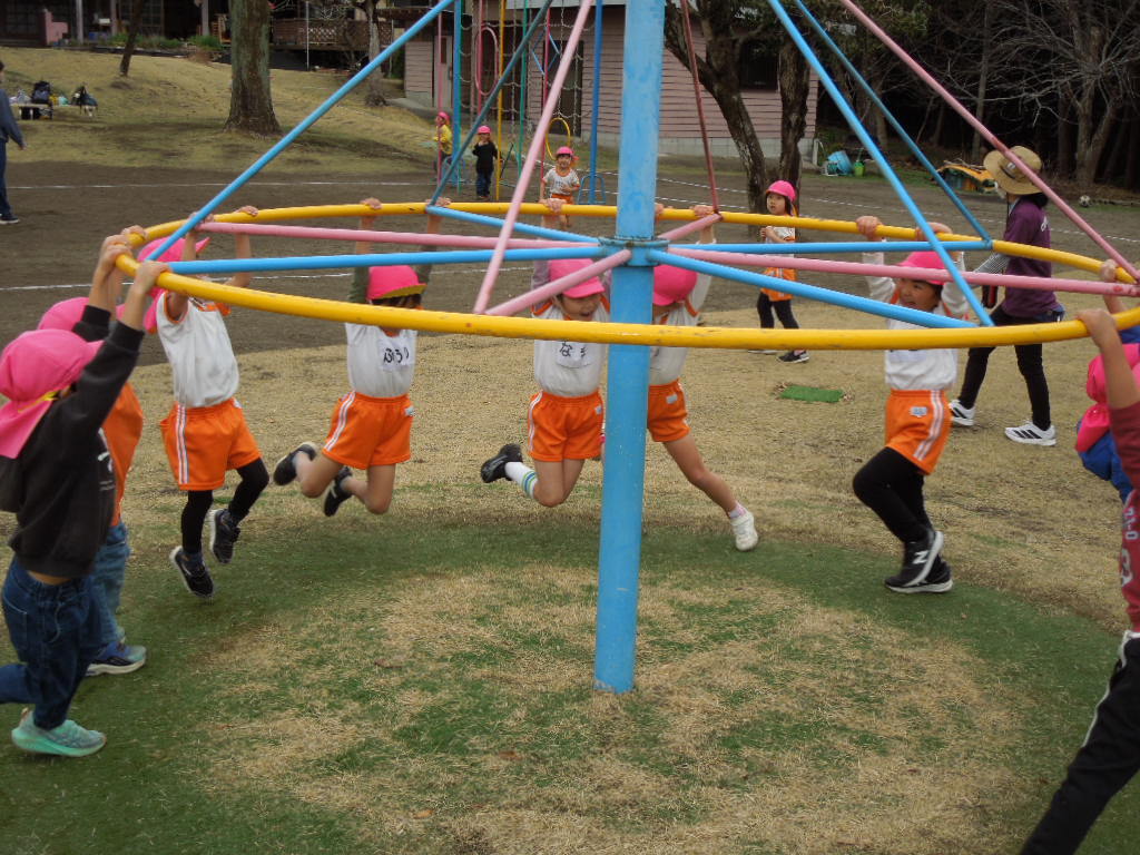 園庭の遊具や用具を使っての体力作りをしています。
