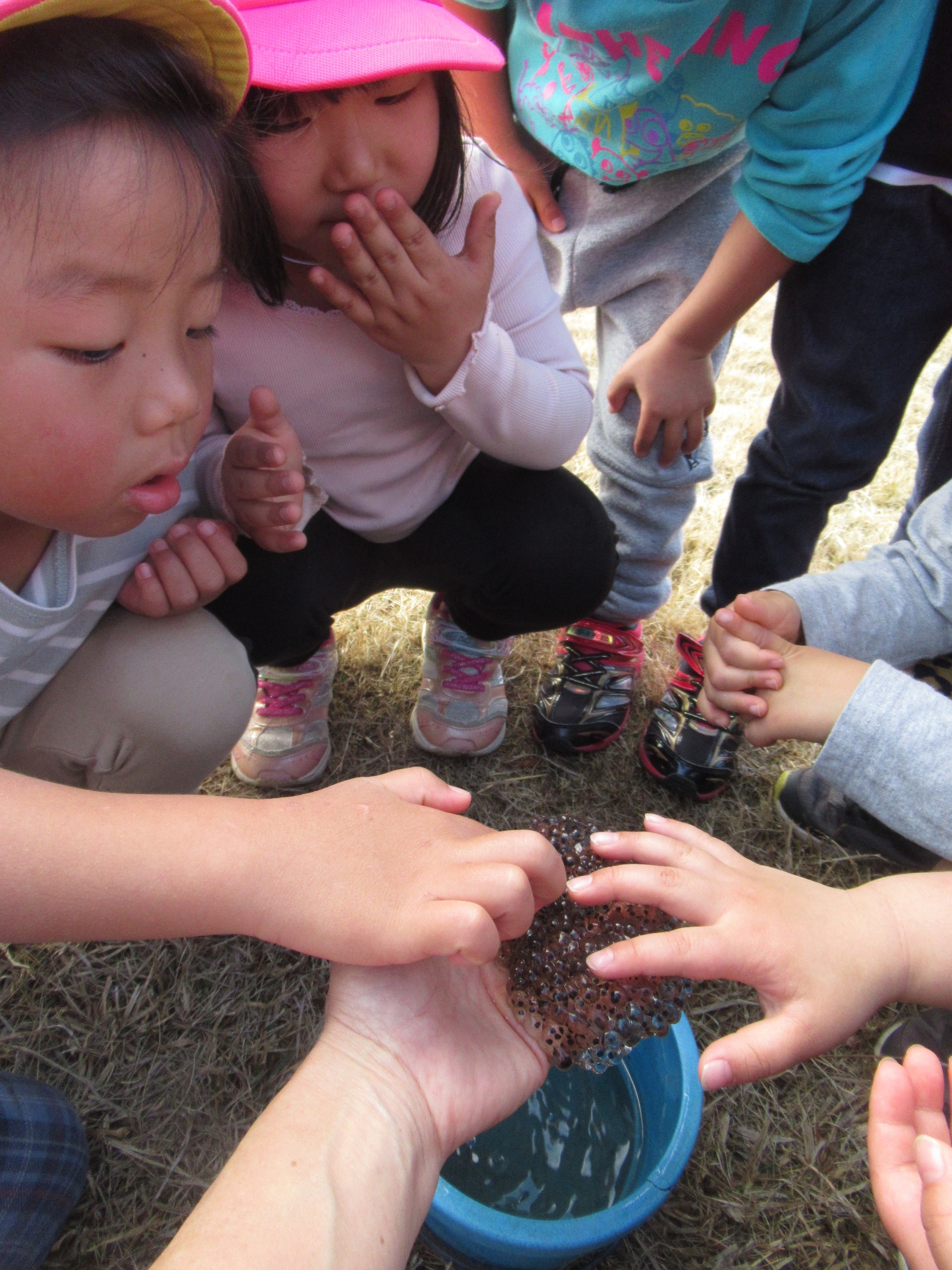 「かえるのたまご」プルプルしてるね。黒いのがおたまじゃくしになるんだね~