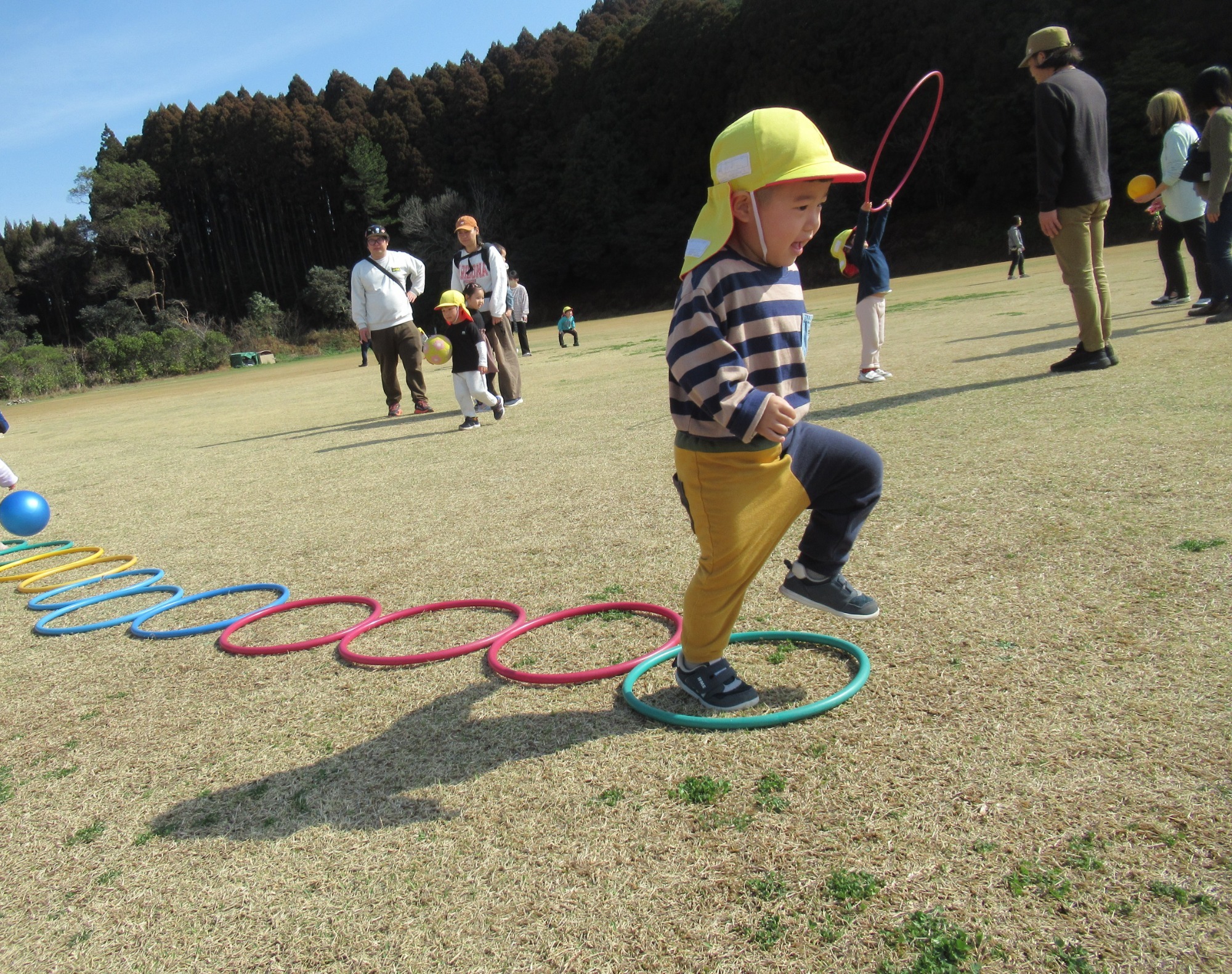 中原公園でかけっこをしています。「がんばれ~」