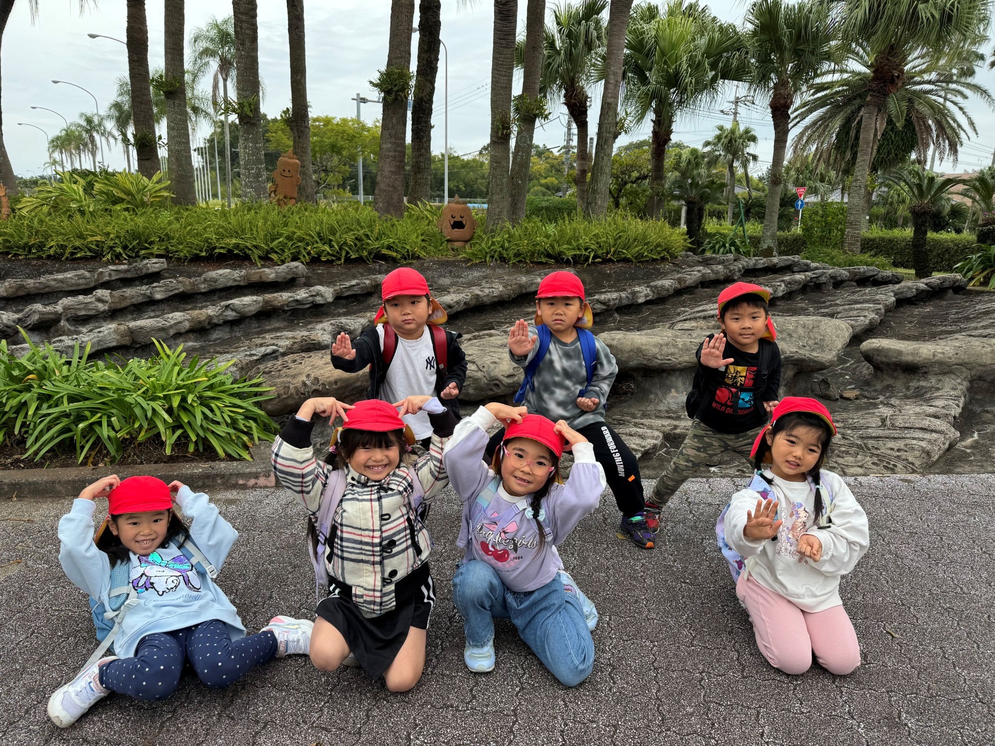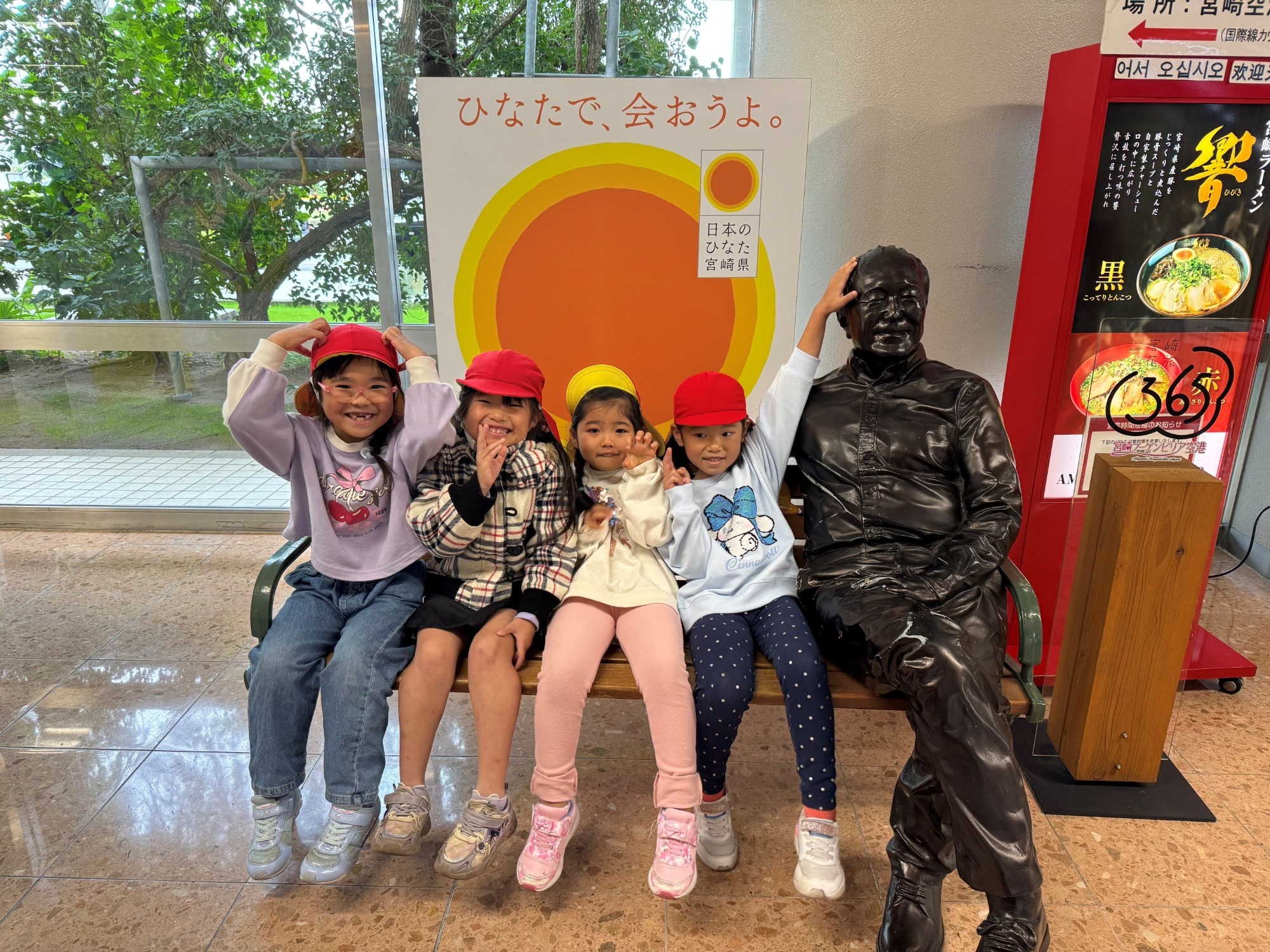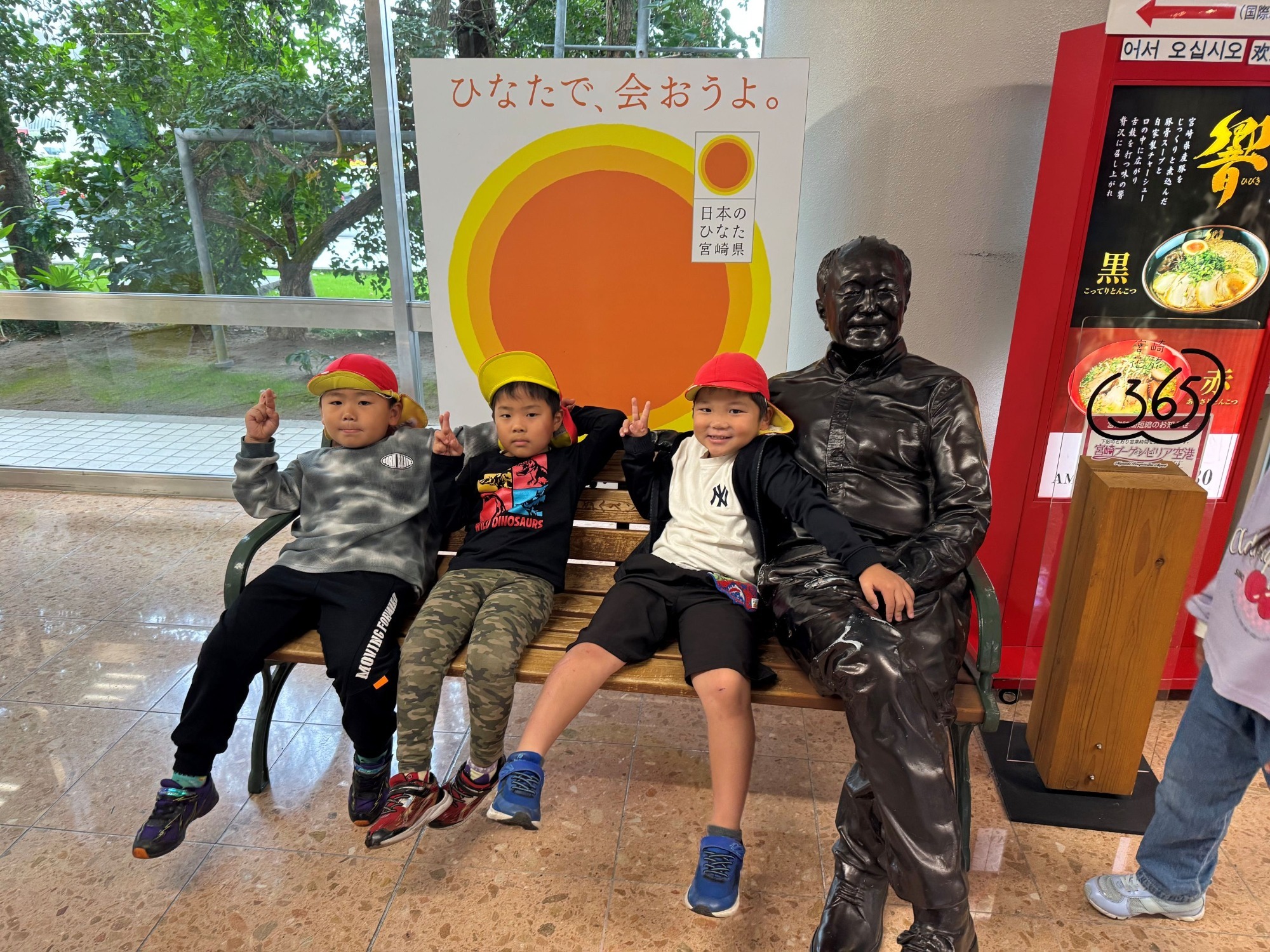 はにわ鬼と一緒に写真を撮ったよ!男の子たちは猗窩座の真似してます。